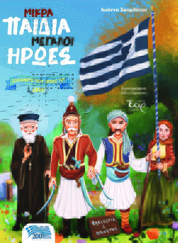 Γνωρίζουμε τον άγιο Κοσμά τον Αιτωλό, τη Λασκαρίνα Μπουμπουλίνα, τον Θεόδωρο Κολοκοτρώνη και τον Νικηταρά… όταν ήταν μικρά παιδιά! Διαβάζουμε περιστατικά από την παιδική τους ηλικία και τους αρματώνουμε! Μέσω του συμβολικού παιχνιδιού καλλιεργείται η αξία της ανιδιοτελούς αγάπης και προσφοράς στα ιδανικά της πατρίδας μας. Ενισχύουμε την ικανότητα της ενσυναίσθησης και βιώνουμε κάποια από τα ξεχωριστά συναισθήματα των ηρώων… όταν ήταν μικρά παιδιά! Ένα μοναδικό βιβλίο δραστηριοτήτων και χειροτεχνίας. Για παιδιά από 5 ετών.