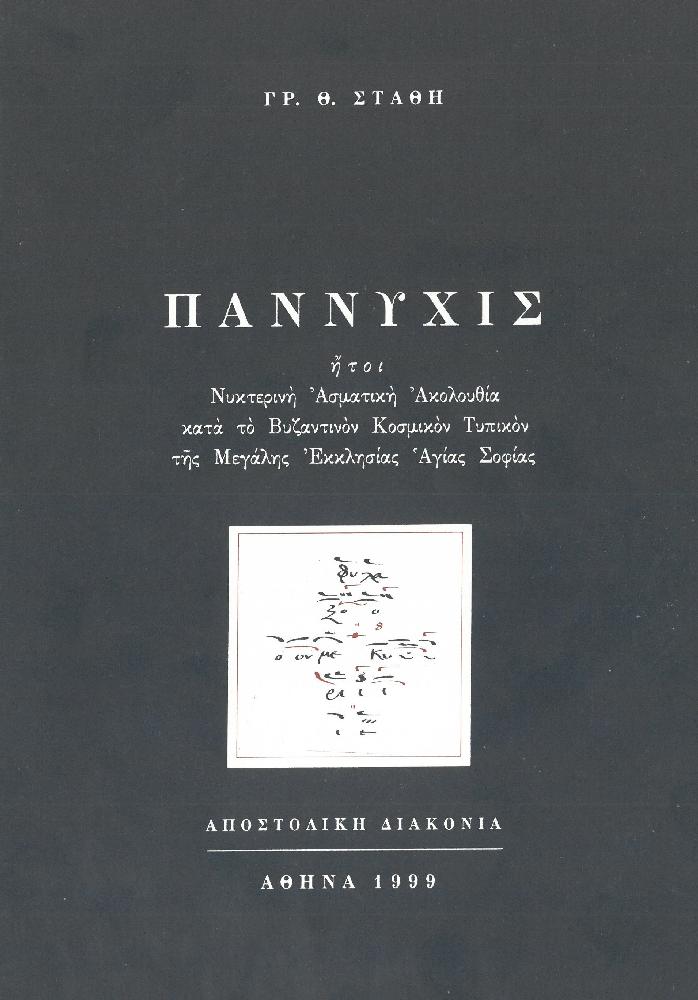 Ήτοι νυκτερινή ασματική ακολουθία κατά το βυζαντινόν κοσμικόν τυπικόν της μεγάλης Εκκλησίας Αγίας Σοφίας.